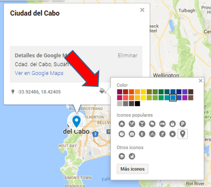 Para familiarizarte con el uso del mapa, modifica el color y el icono respecto a la opción que por defecto te ofrece Google.