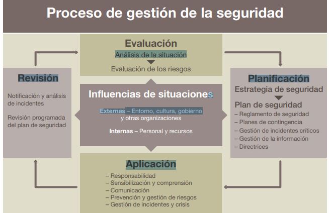 Aunque se pueden encontrar diferencias entre las distintas organizaciones que operan en el terreno, me gustaría empezar dando un panorama general sobre las distintas fases que existen en la gestión de la seguridad en el terreno.
